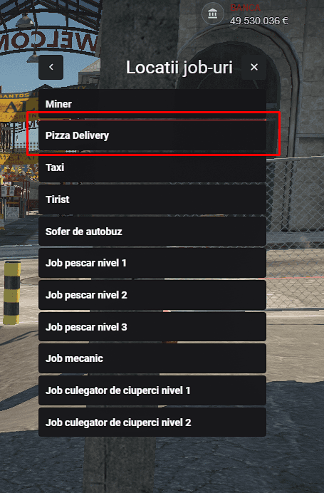 Pentru a începe, trebuie să deții un permis de conducere, pe care îl poți obține de la școala de șoferi, trecând mai întâi printr-un test teoretic, urmat de unul practic. După ce obții permisul, trebuie să mergi la Primărie, unde un NPC de la tejghea te va introduce în meniul interactiv, de unde poți selecta locul de muncă dorit. În cazul vrei să accesezi Skill 2 - Livrator Pizza Avansat, ai nevoie de 10 ore.